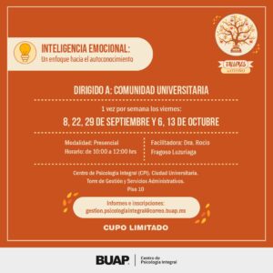 Si perteneces a la comunidad de la Benemérita Universidad Autónoma de Puebla esta información es para ti, ya que con el fin de fomentar la salud mental el Centro de Psicología Integral invita a la Comunidad Universitaria a sus talleres: