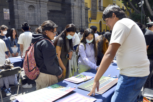 Los transeúntes se dejaron cautivar por la curiosidad y se acercaron a los diferentes stands con diversos juegos instalados en la Plaza de la Democracia, frente al Edificio Carolino. ¡Pase a la Feria de las Matemáticas!, se leyó en un cartel portado por un personaje de la antigua Grecia. Los colaboradores, en su mayoría estudiantes, dieron a conocer la historia de esta ciencia, la cual está en acciones tan simples y cotidianas como pagar en un supermercado.