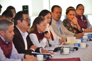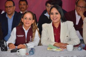 Olga Lucia Romero Garci-Crespo, Presidenta Estatal de Morena, acompañada de diputados electos y en funciones, respaldan el triunfo de Tonantzin Fernández en San Pedro Cholula, para hacer respetar la voluntad del pueblo.