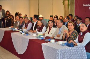 Estuvieron presentes en la rueda de prensa: Agustín Guerrero Castillo, Secretario General de Morena, Alfonso Bermúdez Ruíz, representante de Morena ante el IEE, Samuel Aguilar Pala, secretario de organización y los diputados federal y locales en funciones y electos: Eduardo Castillo López, María Ruth Zarate Domínguez, Mayra Estrella Tame Macías, Rosalina Toledo Castellanos, Liz Minto, Laura Zapata, Vianey García y Roberto Bautista.