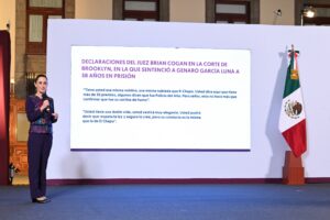 Recordó que Genaro García Luna fue sentenciado ayer a 38 años y multa de dos millones de dólares por participar en una empresa criminal continua; conspiración para la distribución internacional de cocaína; conspiración para distribuir y posesión con intención de distribuir cocaína; conspiración para importar cocaína y hacer declaraciones falsas.