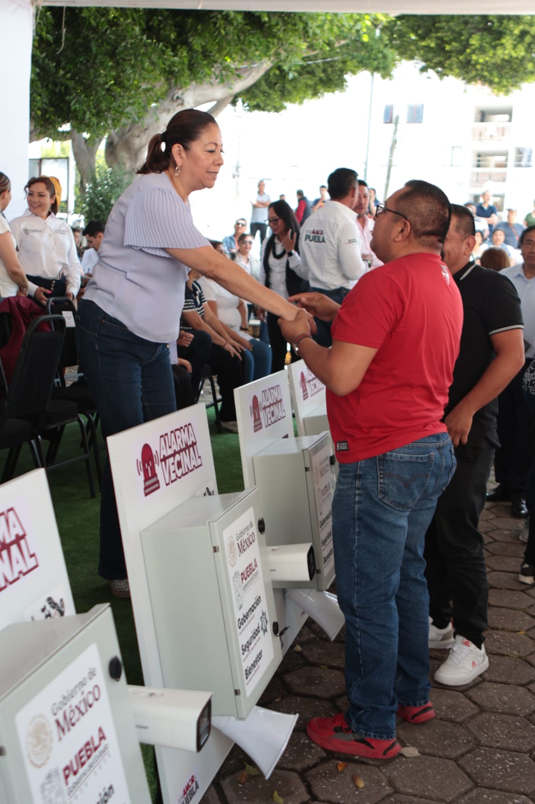 La entrega de Alarmas Vecinales fue encabezada por el Coordinador de Gabinete, José Luis García Parra, en representación del gobernador Alejandro Armenta, también acudió Rodrigo Abdala Dartigues, delegado estatal de los Programas de Bienestar; Gabriel Biestro Medinilla, coordinador de regidores del Ayuntamiento de Puebla, en representación del presidente municipal, José Chedraui; así como subsecretarias y subsecretarios del Gobierno del Estado.