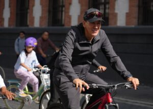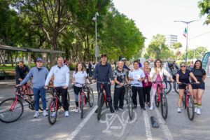 Durante el recorrido, las y los asistentes del Gabinete Municipal y demás participantes escucharon hechos históricos, anécdotas y sucesos relevantes de los monumentos, edificios y sitios emblemáticos frente a los cuales se detuvo la rodada.