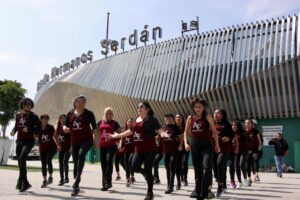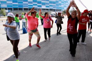 Durante la jornada, las activadoras físicas del IMDP llevaron a cabo sesiones de activación con rutinas accesibles para personas de todas las edades, incentivando la práctica del ejercicio como herramienta preventiva para mejorar la calidad de vida.