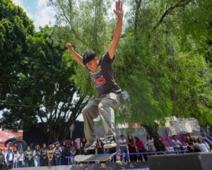 Dicho encuentro incluyó diversas actividades; entre ellas, exhibiciones de skate y stands de emprendimientos locales y la develación de un mural realizado por mujeres artistas urbanas. Todas estas acciones tuvieron como propósito ofrecer a las y los jóvenes espacios seguros de convivencia y expresión, donde pudieran canalizar su creatividad mediante diferentes manifestaciones artísticas.