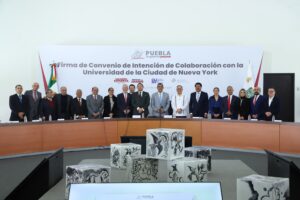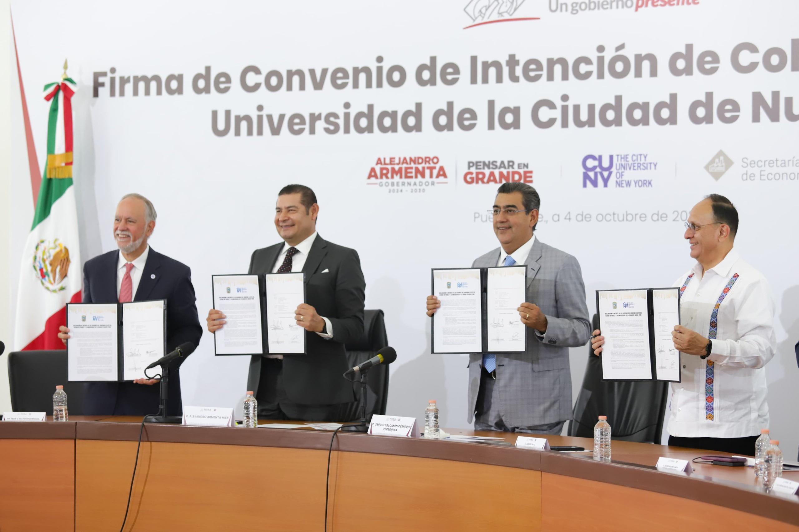 -El gobernador Sergio Salomón acompañó a su homólogo electo, Alejandro Armenta Mier en la firma de convenio entre el próximo Gobierno del Estado y la Universidad de la Ciudad de Nueva York