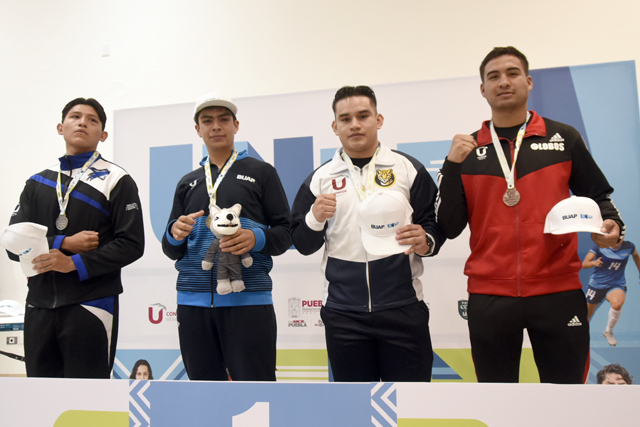Las preseas doradas fueron para: Álvaro Enrique Torres Díaz de la Facultad de Contaduría, en la categoría de 75-81 kg.; y Emiliano Pérez Alamillo, de la Facultad de Ingeniería Química, en el rango de más de 91 kg.