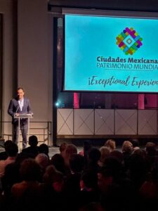 En el CÃrculo de Bellas Artes de Madrid, reconocido recinto cultural, se sumó a la presentación encabezada por la secretaria de Turismo del Gobierno de México, Josefina RodrÃguez Zamora, y representantes de las otras nueve ciudades mexicanas que gozan de esta denominación, y estuvo en la presentación de la bailarina mexicana, reconocida internacionalmente, Elisa Carrillo, para complementar la exposición de la oferta turÃstica de todo México.