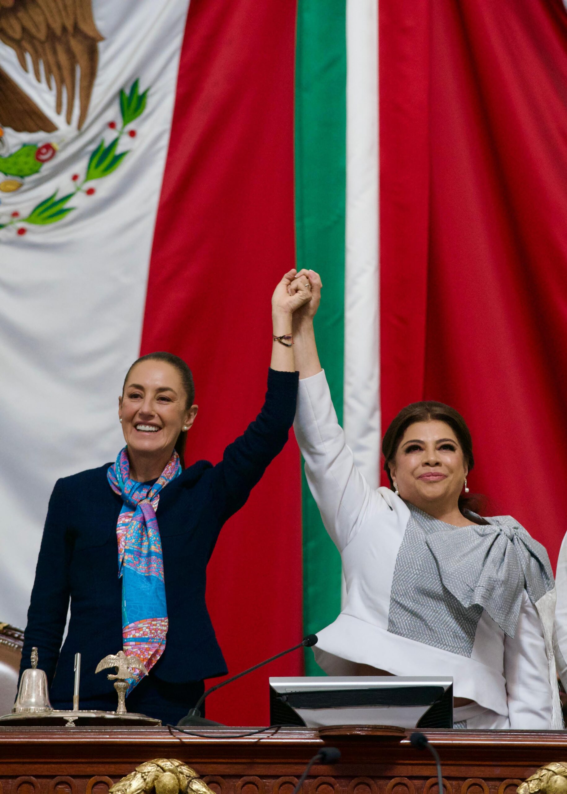 La Presidenta Constitucional de los Estados Unidos Mexicanos, Claudia Sheinbaum Pardo asistió a la sesión solemne del Congreso de la Ciudad de México en la que Clara Brugada Molina tomó protesta como Jefa de Gobierno.