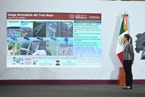“No llevamos ni 7 meses en el gobierno y ya se están construyendo dos líneas de tren: a Pachuca, a Querétaro. Se están terminando los detalles del Tren Maya, sobre todo relacionado con los sitios arqueológicos y una parte de la catenaria que se está terminando. Y al mismo tiempo, ya se está construyendo el Tren Maya de carga, se está yendo hacia Progreso”, destacó en la conferencia matutina: “Las mañaneras del pueblo”.