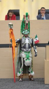 Ante el Pleno de la LXII Legislatura y en rueda de prensa, la diputada explicó que, desde hace 29 años se realiza esta celebración, donde se honra a los muertos mediante una caminata nocturna con antorchas, un ritual escénico y la ofrenda monumental de las mil luces.