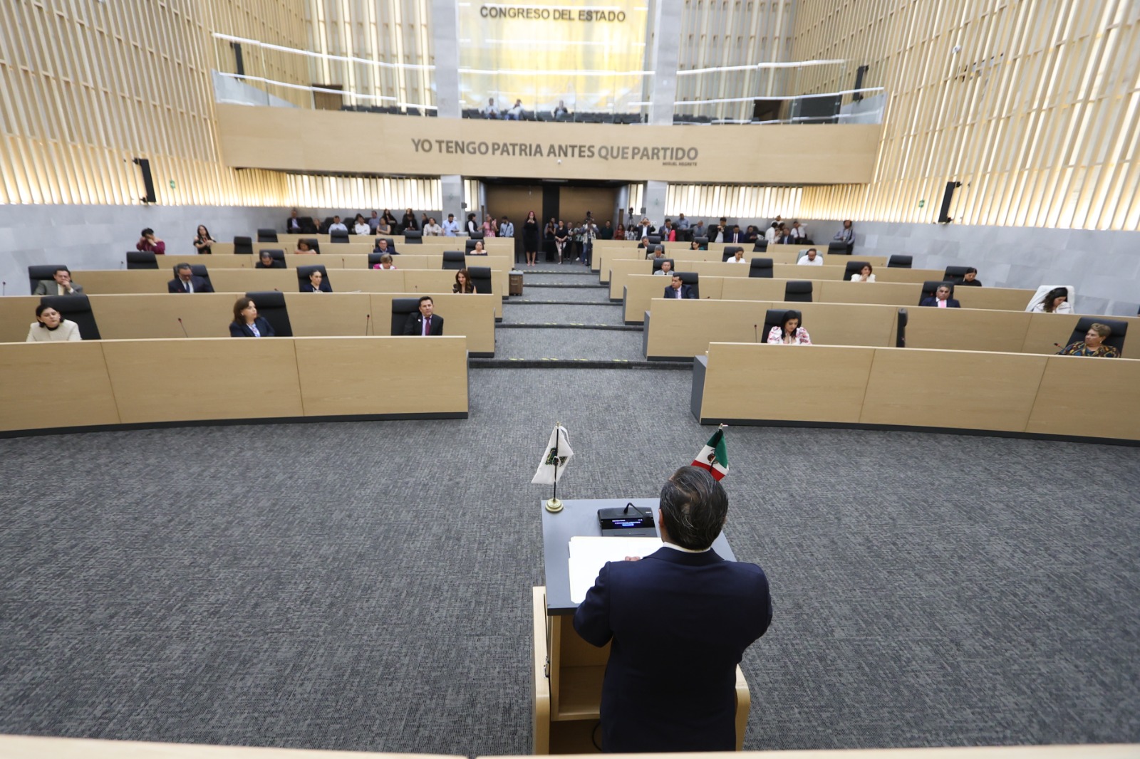 En otro momento de la sesión, se presentó un punto de acuerdo por el que se exhorta a los 213 Ayuntamientos y a los cuatro Concejos Municipales del Estado, para que, en el ámbito de sus atribuciones, realicen las modificaciones necesarias a sus Presupuesto de Egresos, a fin de considerar seguros de vida dignos para las y los policías municipales, en cumplimiento de la Ley General del Sistema Nacional de Seguridad Pública y demás ordenamientos aplicables.