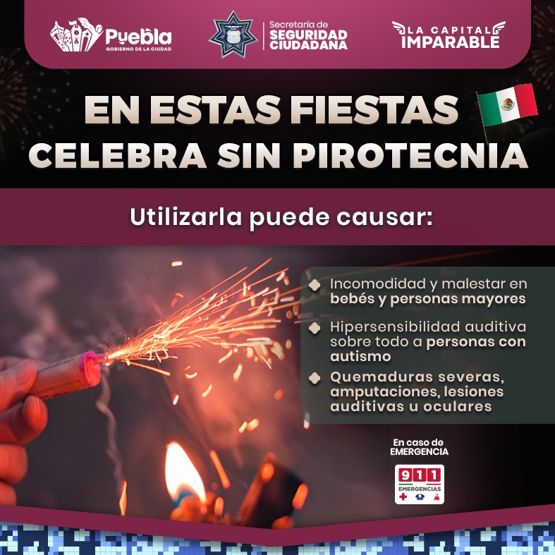 Con motivo de las celebraciones del 15 y 16 de septiembre, la Secretaría de Seguridad Ciudadana a través de su Dirección General de Protección Civil, implementa un operativo especial en el primer cuadro de la ciudad, y emite recomendaciones así como medidas de prevención para disfrutar de los festejos.
