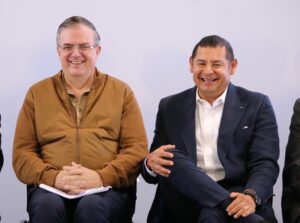 El secretario de Economía del Gobierno de México, Marcelo Ebrard y el gobernador de Puebla, Alejandro Armenta, encabezaron la firma de Convenio del Polo de Desarrollo Económico para el Bienestar “Capital de la Tecnología y la Sostenibilidad”, a través del cual se incentivará la inversión y se protegerá a empresarios locales y nacionales, como lo establece la política del gobierno de la presidenta Claudia Sheinbaum.
