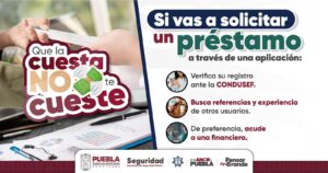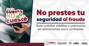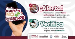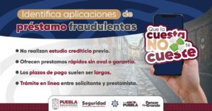 El Gobierno del Estado de Puebla, que encabeza el mandatario Alejandro Armenta, a través de la Secretaría de Seguridad Pública (SSP), hace un llamado a la ciudadanía para redoblar las medidas de autocuidado ante el uso de aplicaciones de préstamo de dinero.