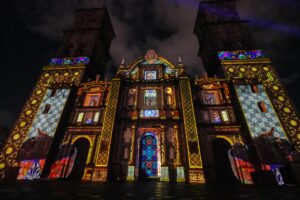 – Las últimas funciones de esta presentación por Fiestas Patrias serán cada 30 minutos de las 19:30 a las 22:00 horas en el atrio de la Catedral de Puebla