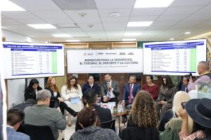 El secretario de Seguridad Pública anunció también que el 2025 se contempla un reclutamiento de 2 mil nuevos elementos, respaldado por la Universidad de las Ciencias Policiales, con el fin de fortalecer a los 217 municipios en control de confianza, equipamiento y proximidad social. Resaltó que la coordinación diaria con la Secretaría de la Defensa Nacional (DEFENSA), Secretaría de Marina (SEMAR), la Guardia Nacional (GN) y los ayuntamientos ha permitido sostener los resultados presentados.