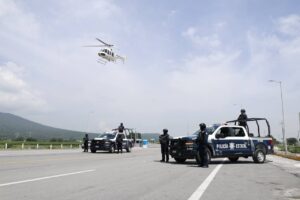 – La Policía Estatal conjunta esfuerzos con la Guardia Nacional para el despliegue de elementos, patrullas, helicópteros y torres de videovigilancia en tramos carreteros.