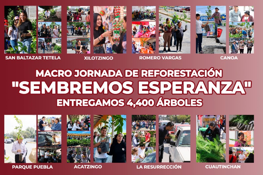 En la junta auxiliar de San Baltazar Tetela y el municipio de Cuautinchán se entregaron 800 árboles y se plantaron en espacios comunitarios con la participación activa de jóvenes; en el crucero de Calzada Zaragoza y Parque Puebla, se distribuyeron 1,000 árboles a transeúntes y automovilistas, mientras que en la unidad habitacional San José Xilotzingo, se entregaron 500 árboles, promoviendo la conciencia ambiental entre los vecinos.