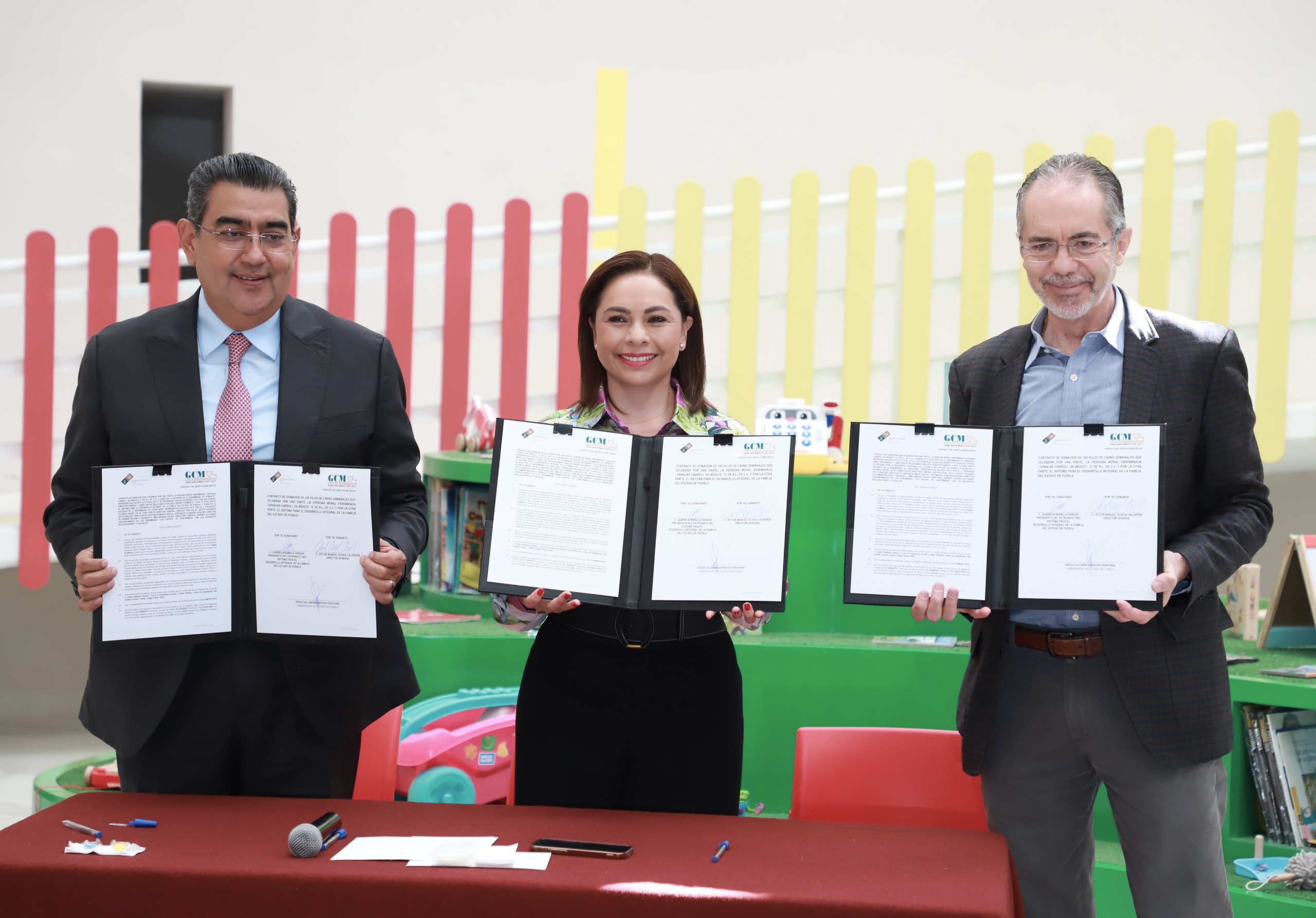 En beneficio de las niñas, niños, adolescentes y adultos mayores bajo resguardo del Sistema Estatal DIF, el gobernador Sergio Salomón; la presidenta honoraria del Patronato del organismo, Gaby Bonilla y directivos de la empresa Granjas Carroll, firmaron un contrato de donación para el otorgamiento de 250 kilogramos de carne de manera semanal a centros de asistencia social.
