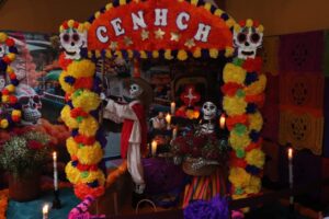 Por su parte, la titular del Voluntariado, Minerva García Chávez detalló que las y los jóvenes se dieron cita desde muy temprano para el montaje de los altares, con el apoyo de sus maestras y maestros, por lo que esta actividad no solo enaltece las tradiciones, también promueve la convivencia entre las y los participantes.