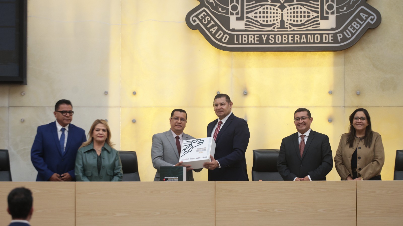 Ante el Pleno de la LXII Legislatura del Congreso, el Gobernador del Estado, Alejandro Armenta, entregó el Paquete Económico 2026, que contiene la Ley de Ingresos y el Presupuesto de Egresos del próximo año, donde se plasman las directrices mediante las cuales se orientarán los recursos, con una visión social y humanista.