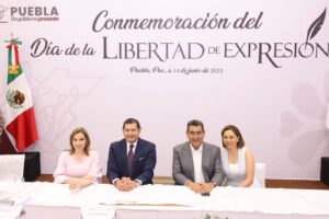 Acompañado de la presidenta honoraria del SEDIF, Gaby Bonilla, y del secretario de Gobernación, Javier Aquino Limón, el mandatario afirmó que en Puebla está garantizado el derecho a la libre expresión.