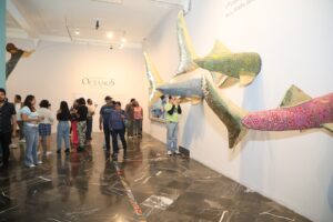 Las y los visitantes podrán maravillarse con esculturas elaboradas con chaquira tradicional y materiales plásticos recolectados en costas mexicanas, que dan vida a obras que reflejan tanto la riqueza cultural como la necesidad de rescatar nuestros océanos.