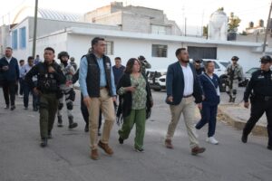 En esta ocasión el secretario realizó una caminata por calles de la colonia Exhacienda de Chapulco, junto con su equipo de trabajo y acompañado por líderes vecinales que señalaron algunos puntos que consideran de riesgo y pidieron sean atacados con medidas de prevención, autocuidado y vigilancia.