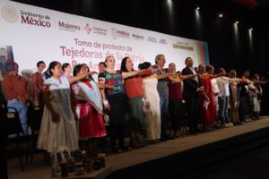 La funcionaria federal indicó que ésta es la primera toma de protesta de Tejedoras de la Patria a nivel nacional y tiene como objetivo reconocer que México se sostiene en gran parte por lo que hacen las mujeres en el hogar, por su familia y a favor de su comunidad.