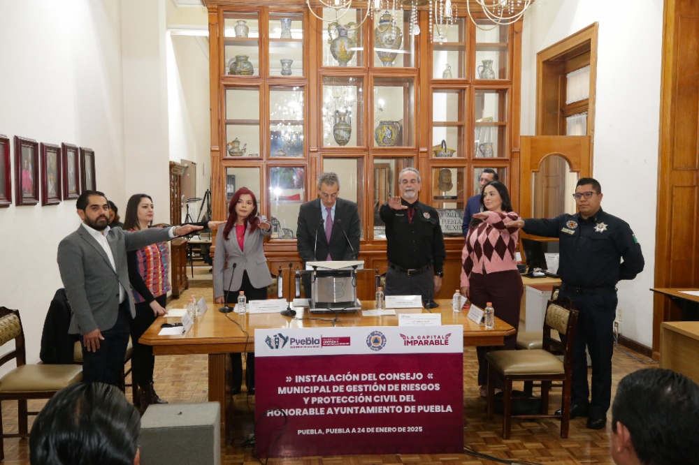 Como parte de las acciones encaminadas a la gestión de riesgos en materia de protección civil, en beneficio de las y los poblanos, el presidente municipal de Puebla, Pepe Chedraui Budib, realizó la integración y toma de protesta a los integrantes Consejo Municipal de Gestión de Riesgos y Protección Civil.