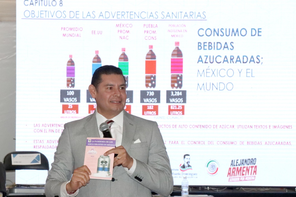 Alejandro Armenta ha llevado su mensaje sobre los peligros de los edulcorantes a más de 500 conferencias en todo el país, y ahora en Puebla continuará con esta cruzada informativa, alcanzando a 2,400 trabajadores de la salud.