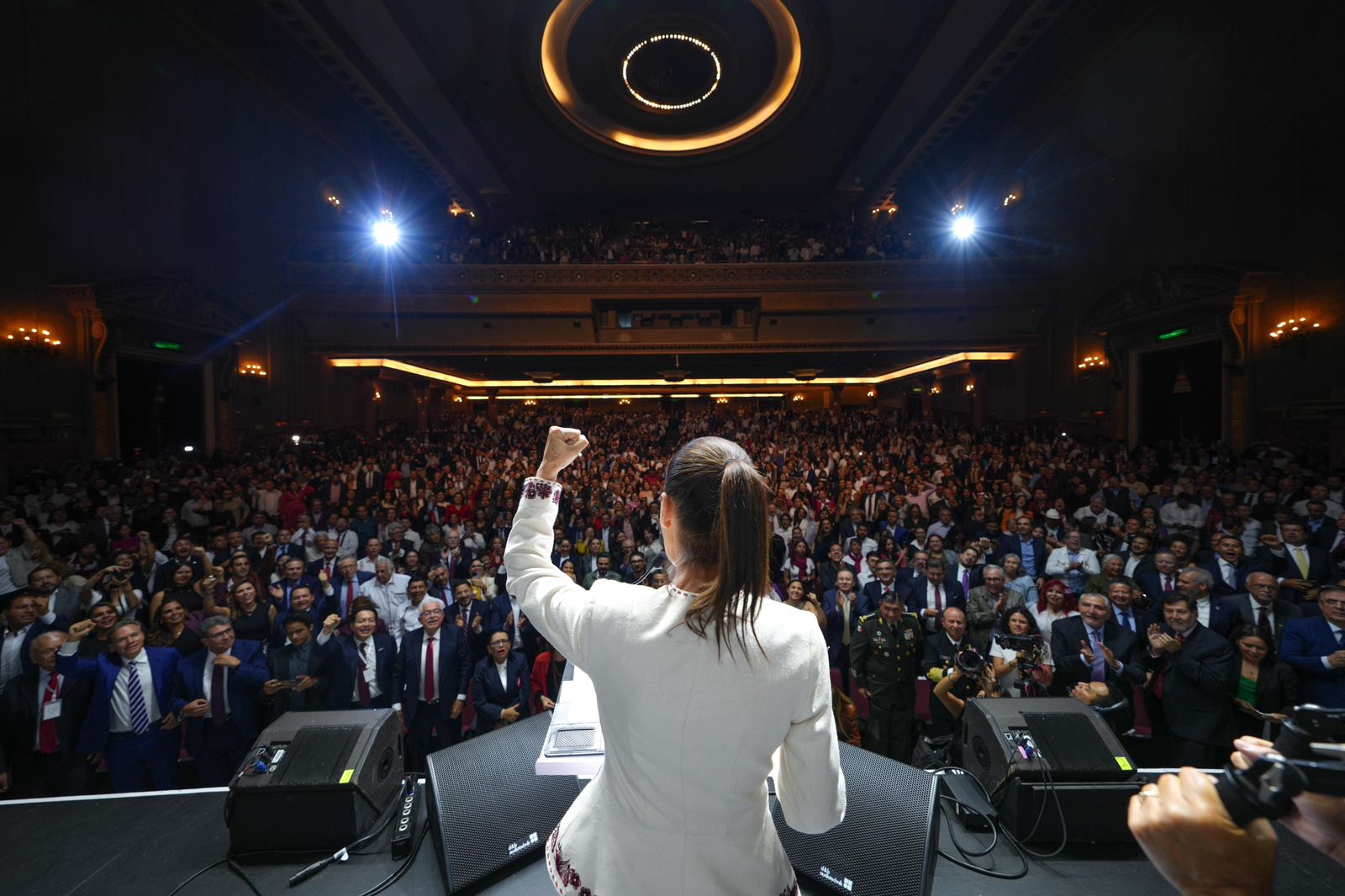 Durante la celebración de su entrega de constancia como Presidenta Electa, Claudia Sheinbaum refrendó su compromiso de gobernar bajo el mandato del pueblo de México, el cual fue continuar con la Cuarta Transformación de la vida Pública que, con el Presidente Andrés Manuel López Obrador, logró un cambio en la vida de todos y todas, al dejar atrás los gobiernos neoliberales cuya prioridad era el interés económico sobre los derechos de las y los mexicanos.