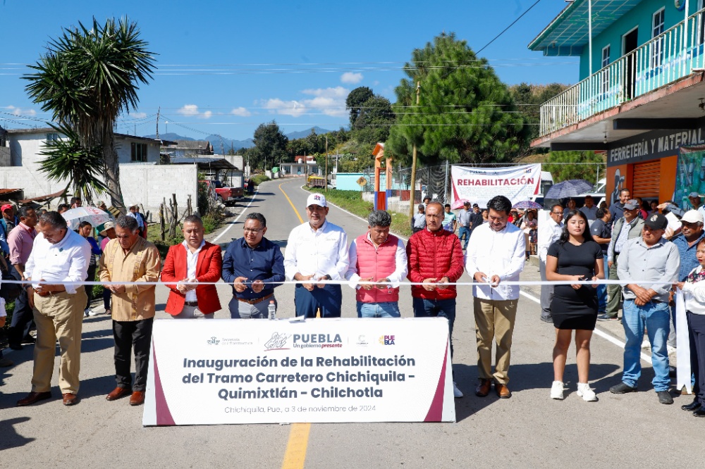 El gobierno estatal impulsa programas sociales y ejecuta obras en todos los municipios de Puebla, sin distingo partidista o de región, trabajando de manera igualitaria con todas las autoridades municipales, sentenció el gobernador Sergio Salomón al inaugurar la rehabilitación del tramo carretero Chilchotla – Quimixtlán – Chichiquila – Chichiquila.