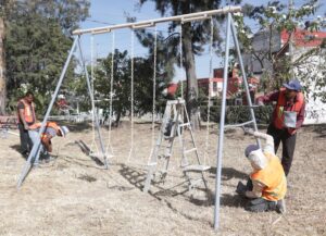 En recorrido por el lugar, acompañado por el titular de la Secretaría de Servicios Públicos, Clemente Gómez Medina, el alcalde encabezó las labores de chapeo, poda, barrido y desmalezado de calles, recolección de basura, así como de rehabilitación del mobiliario urbano.