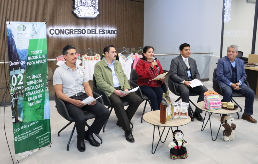 Con el objetivo de promover el deporte, arte y cultura, la diputada Esther Martínez Romano presentó en conferencia de prensa el Torneo Nacional de Pesca Deportiva en río abierto de trucha arcoíris, a desarrollarse el domingo 2 de febrero, en el Río Apulco ubicado en la Sierra Nororiental, actividad considerada única en su tipo, tanto en la entidad como a nivel nacional.