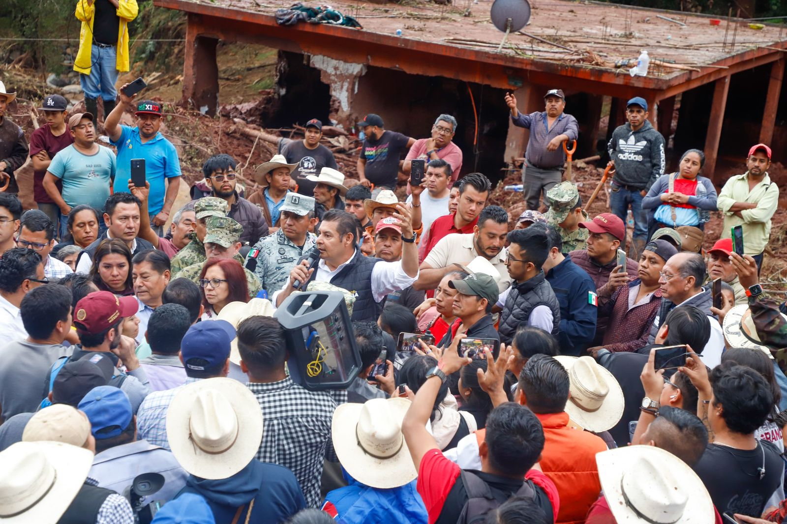 “Estamos con ustedes, no están solos”, aseguró el gobernador de Puebla, Alejandro Armenta, durante su recorrido y visita a las familias damnificadas de la junta auxiliar Tlaxcapanaloya en dicho municipio, les llamó a cuidar la vida, ya que así pueden salir adelante. El mandatario estuvo acompañado por la coordinadora general de Asuntos Intergubernamentales y Participación Social del Gobierno de México, Leticia Ramírez Amaya.