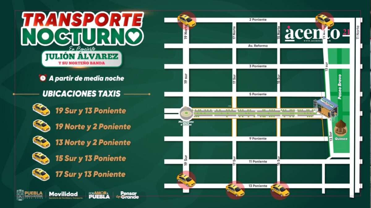 El Gobierno del Estado de Puebla informa que el servicio de transporte nocturno durante y después del concierto de Julión Álvarez en el Paseo Bravo, tiene costo.