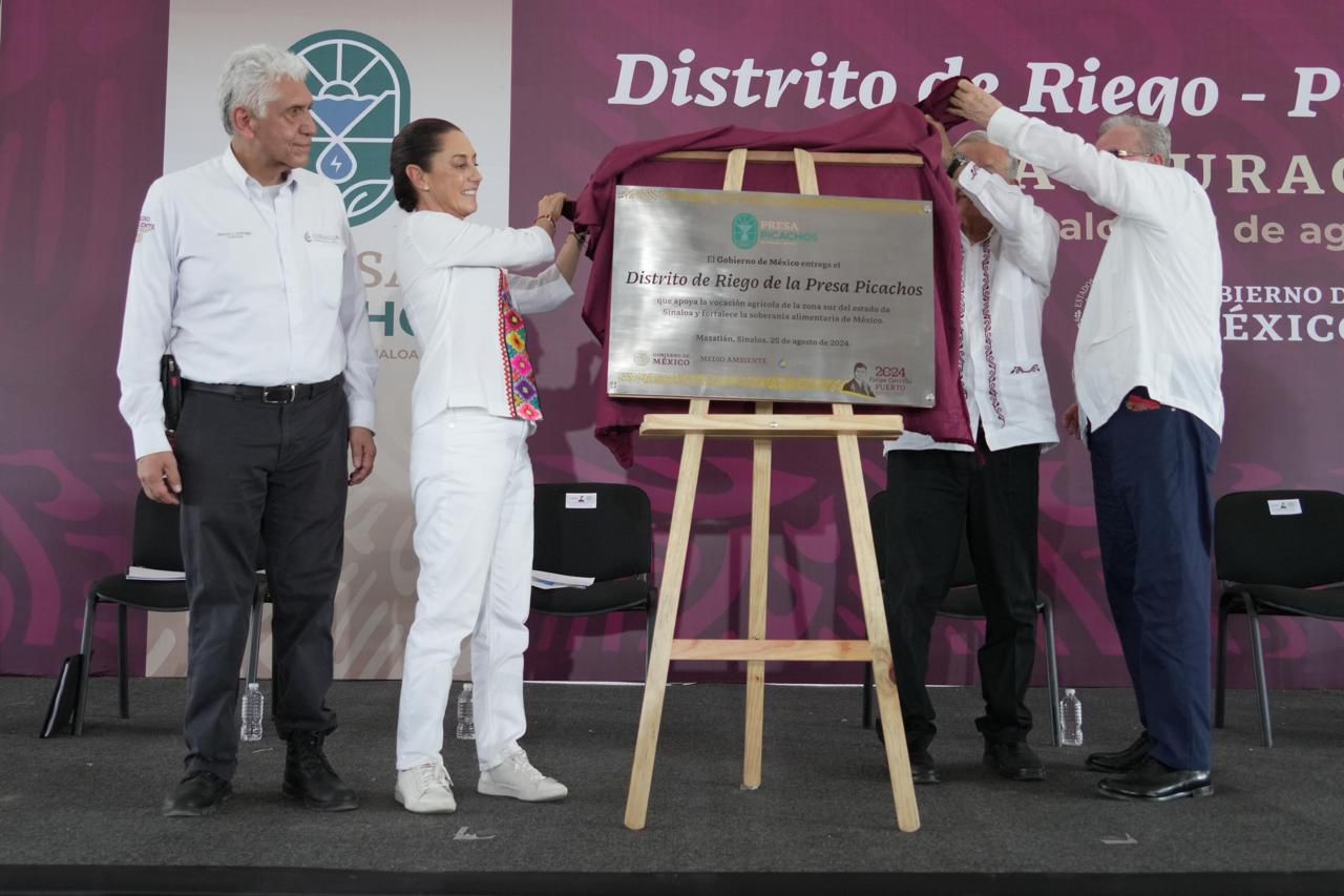 ’’Vamos a seguir apoyando a Sinaloa, porque a Rubén Rocha ya le tocaron tres años con el Presidente, pues ahora le van a tocar tres años con la Presidenta y vamos a seguir colaborando en todo lo que requiera Sinaloa’’, aseguró Claudia Sheinbaum, Presidenta electa de México, durante la inauguración del Distrito de Riego de la Presa Picachos, encabezada por el Presidente Andrés Manuel López Obrador.