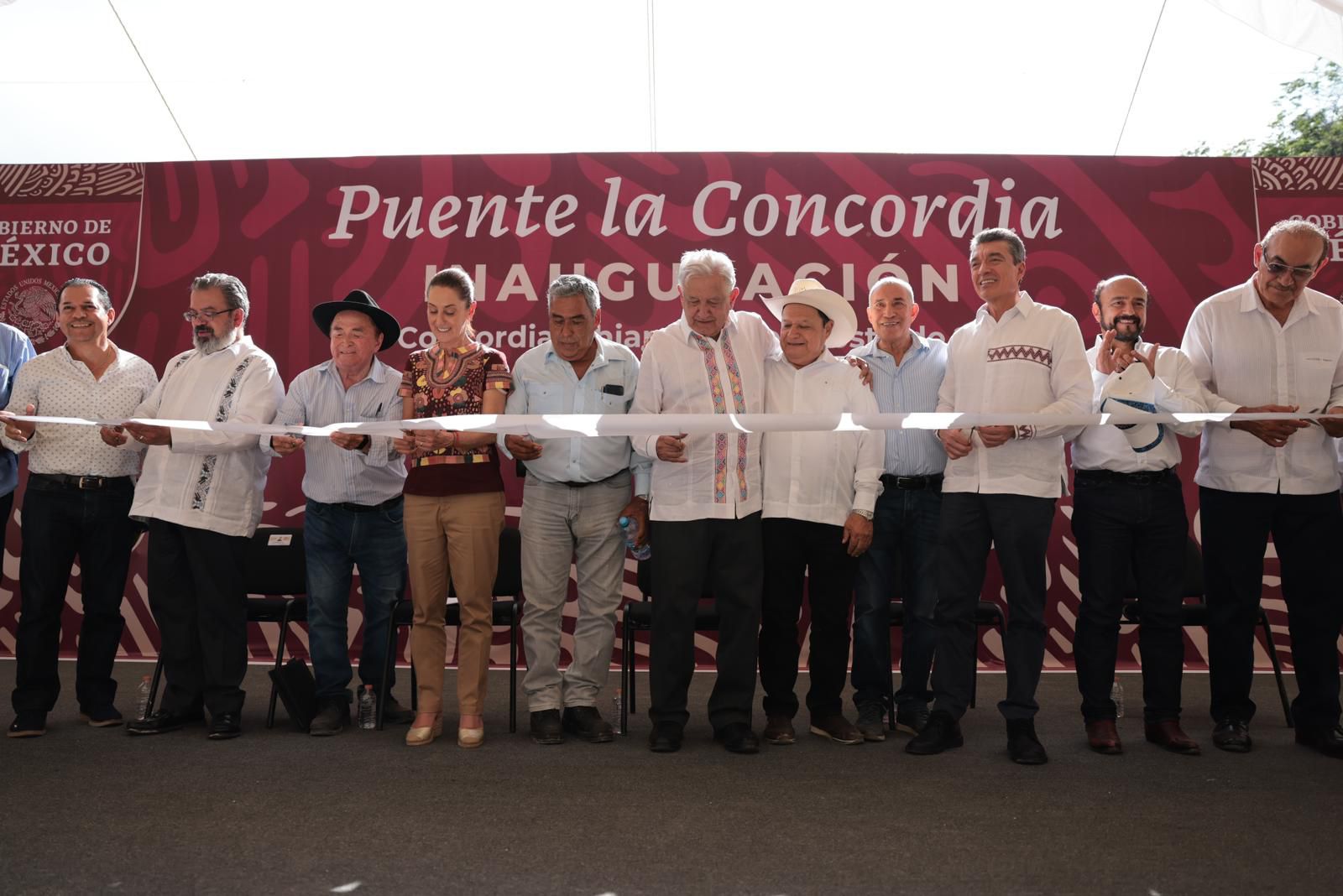 • “Es una obra que tiene un trasfondo; no solamente une zonas de Chiapas, sino que es una obra que representa justicia social”, aseveró Claudia Sheinbaum en la inauguración del Puente de la Concordia